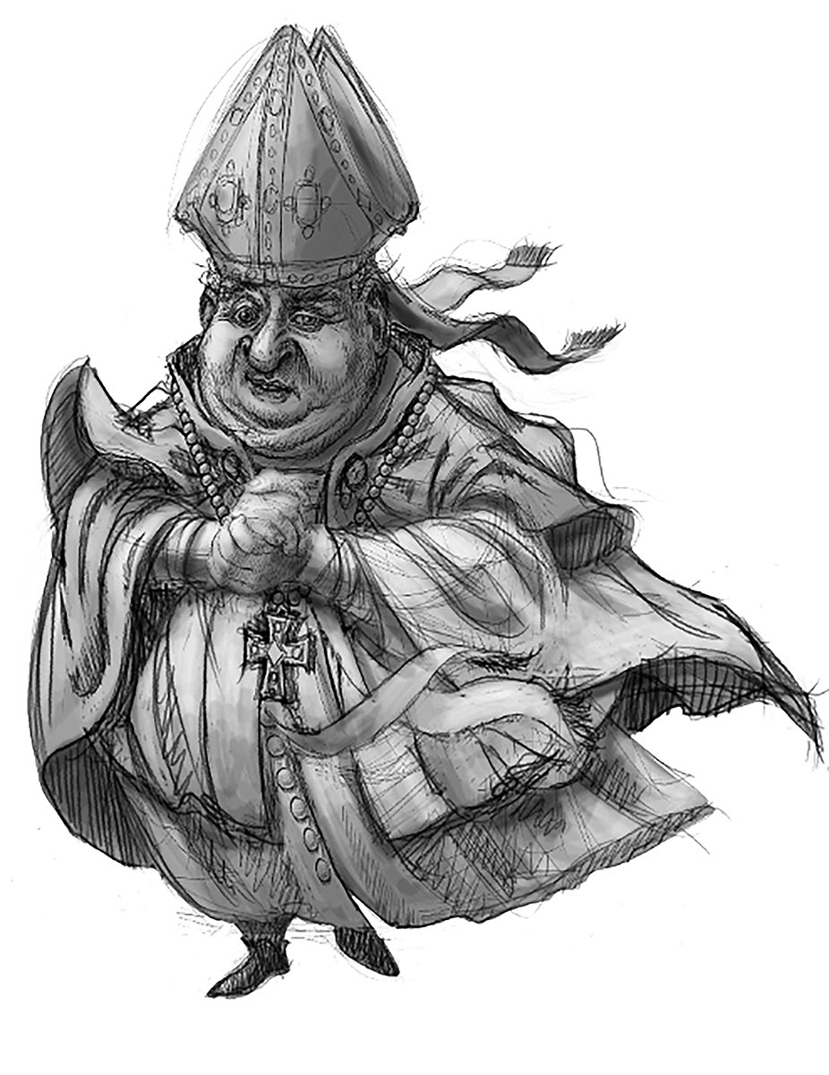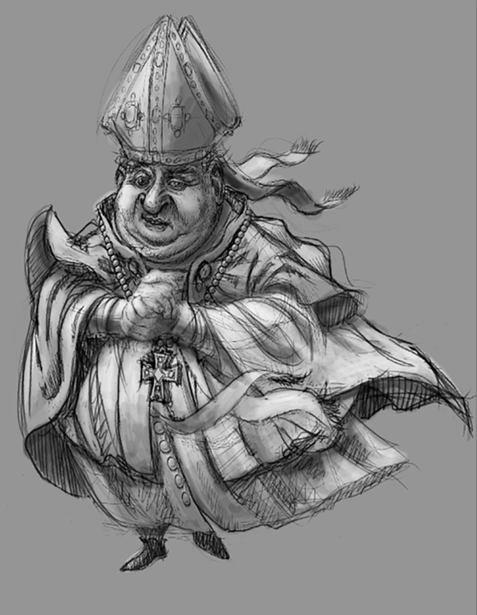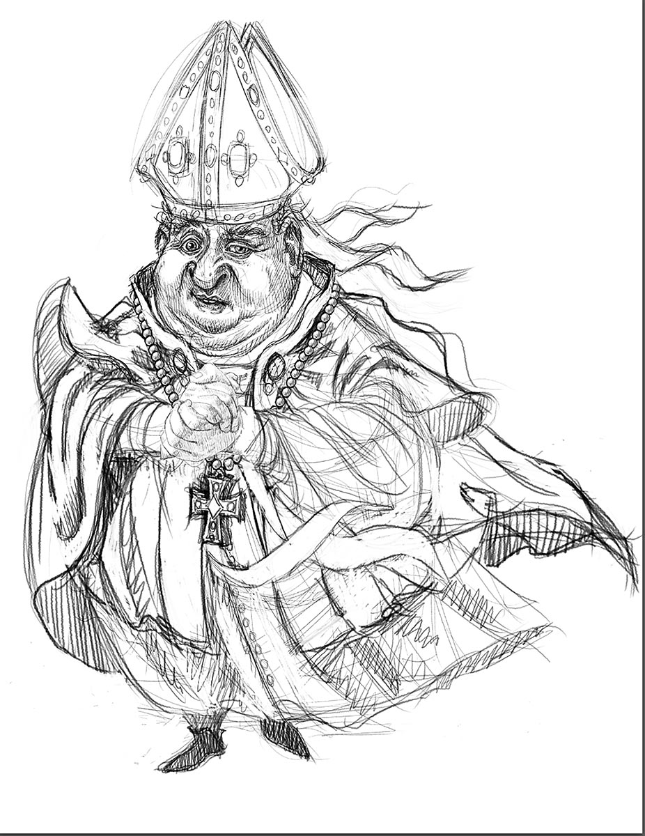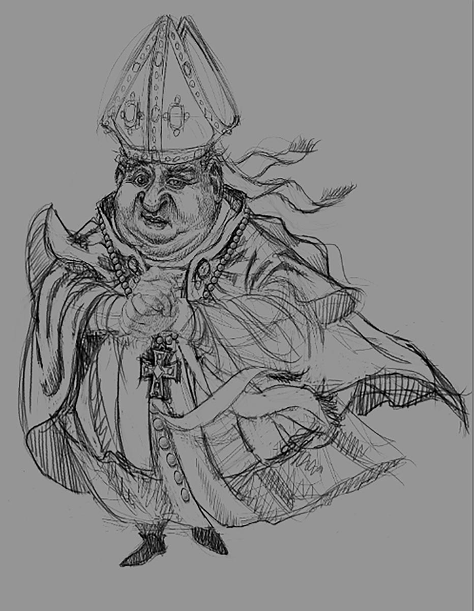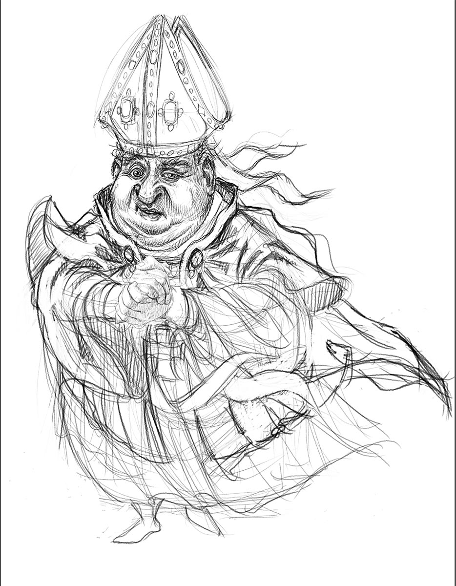10. Add more detail to the sketch. Every material reflects light differently: the gold fabric and jewels needs to have much brighter highlights than the other fabrics or materials.